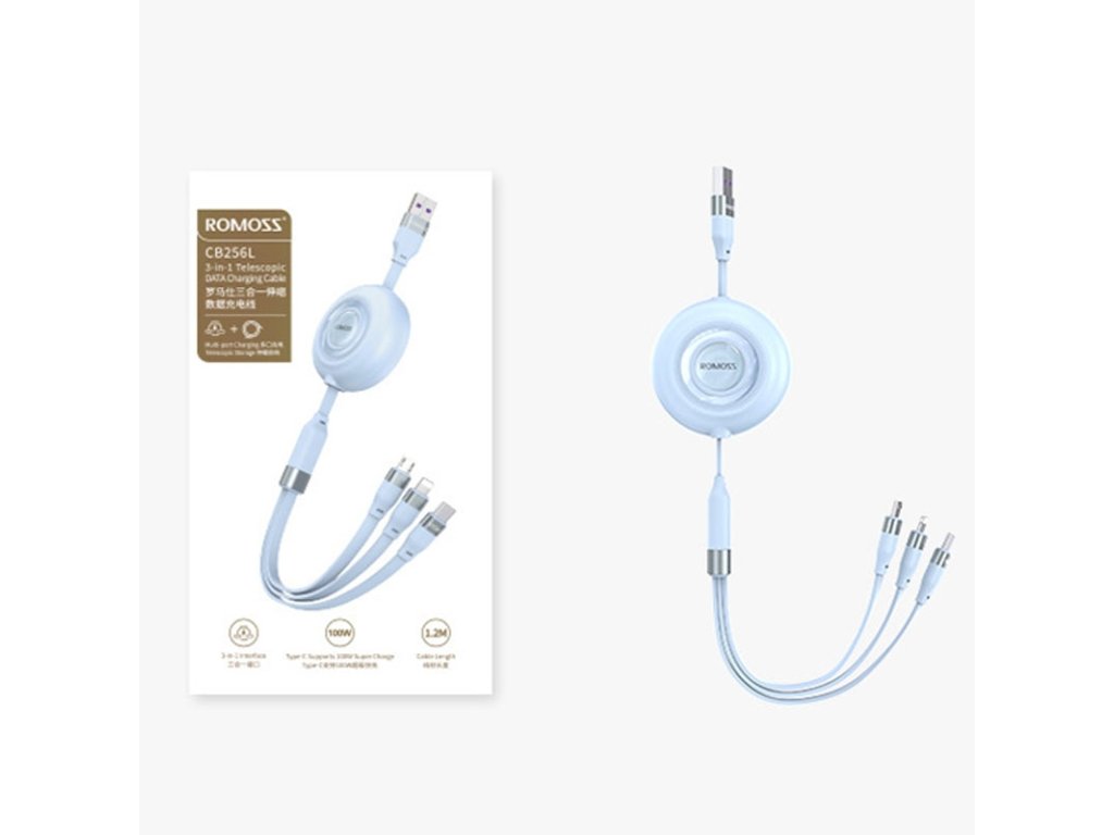 Či už vlastníte smartfón, tablet alebo iné elektronické zariadenie, potrebujete univerzálne riešenie pre nabíjanie. Predstavujeme Nabíjací Kábel ROMOSS CB256L 3 v 1 - váš spoľahlivý spoločník pre nabíjanie rôznych zariadení v jednom kábli.