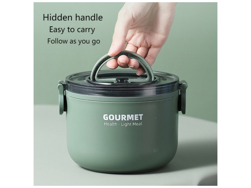 Uchovajte si jedlo čerstvé a teplé s Single-Layer 1000ml 304 Stainless Steel Insulated Bowl Student Plastic Shell Lunch Box (Green).