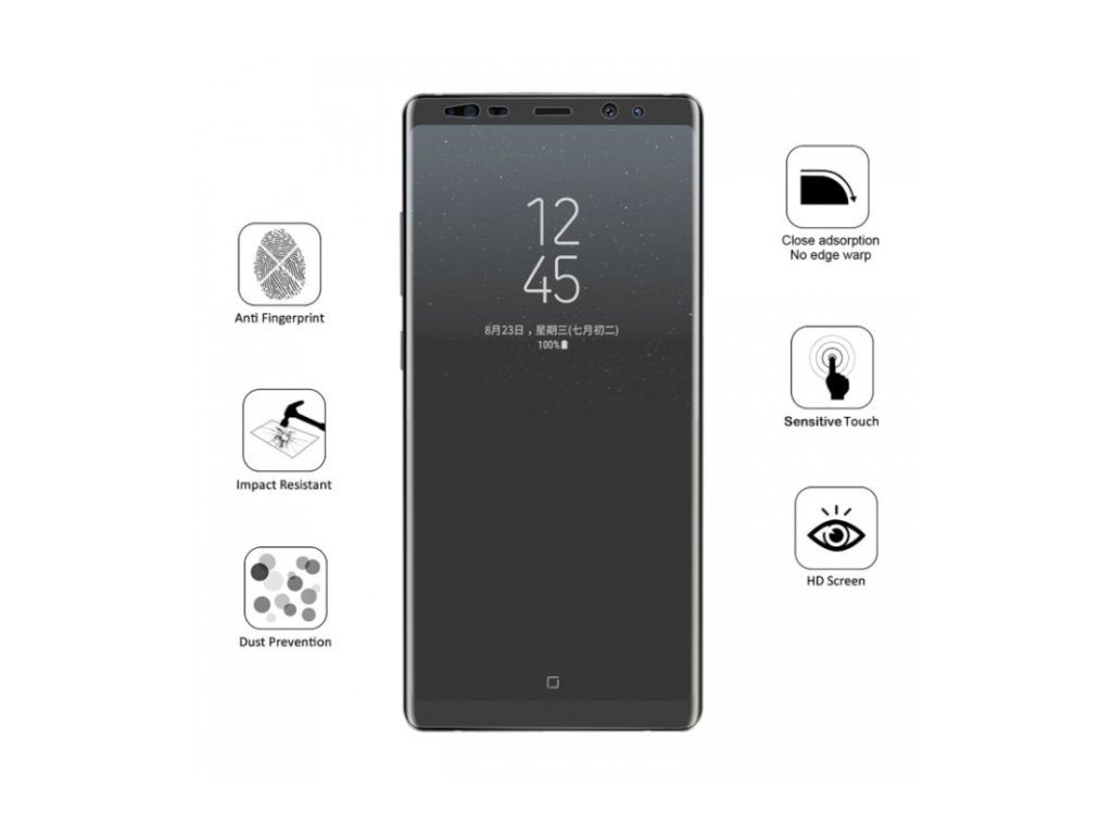 Pre tento zahnutý typ displeja je táto fólia jednoznačnou voľbou ochrany Vášho Lcd displeja - nakoľko z našich dlhoročných skúseností zahnuté displeje ako má Samsung Galaxy Note 8 - tvrdené sklo sa zvykne pri používaní do niekoľkých dní odlepiť.