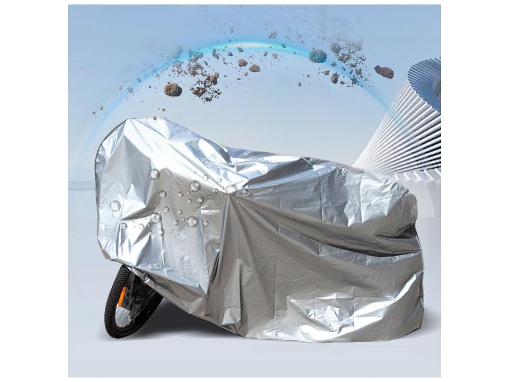 Ochranný kryt na motorku a bicykel (230 x 130 cm) v strieborno-sivej farbe. Nepremokavý materiál chráni pred dažďom, UV žiarením a prachom.