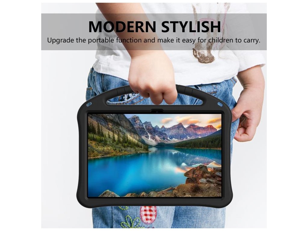 Čierny EVA kryt pre Samsung Galaxy Tab S10 FE+ je vyrobený z ľahkého a nárazuvzdorného materiálu EVA, ktorý poskytuje výnimočnú ochranu pred pádmi, nárazmi a poškriabaním. Jeho ergonomický dizajn zahŕňa integrovanú rukoväť pre jednoduché prenášanie a vstavaný stojan, ktorý umožňuje pohodlné sledovanie obsahu v rôznych uhloch. Tento kryt je ideálny pre deti aj dospelých, ktorí potrebujú spoľahlivú ochranu pre svoj tablet.