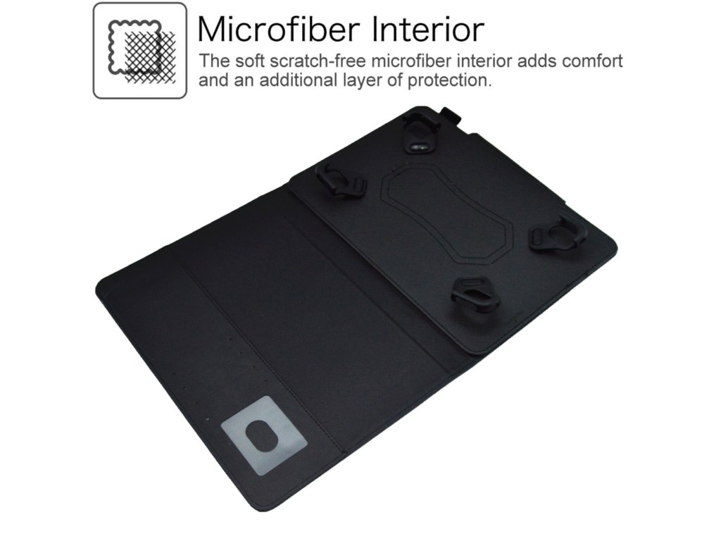 Semišové puzdro pre 10-palcové tablety chráni váš tablet pred nárazmi, prachom a škrabaním. Je presne šité na mieru pre váš tablet, aby sa pevne držalo a zabezpečilo jeho spoľahlivú ochranu. Puzdro navyše poskytuje prístup ku všetkým ovládačom, konektivite a kamerám vášho tabletu.