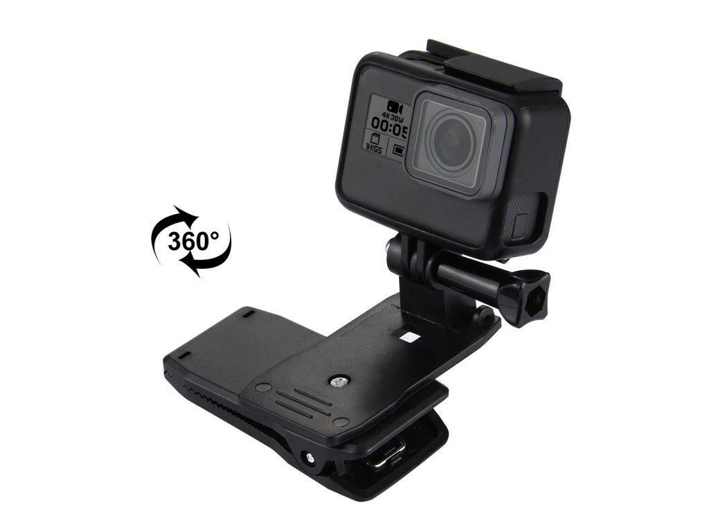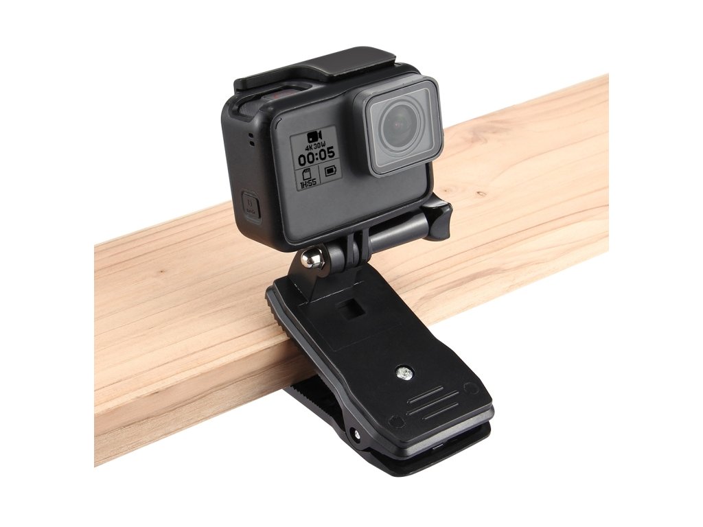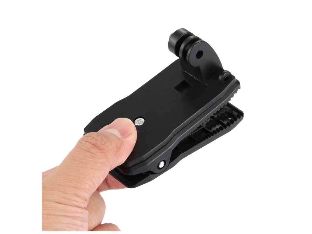 Klip sa dá otáčať o 360 stupňov, čo ti umožňuje jednoducho meniť uhol záberu bez potreby odpájania kamery. Silná pružina a protišmykové zuby zaručujú pevné uchytenie na batoh, popruh, opasok, popruh helmy alebo aj na okraj oblečenia.