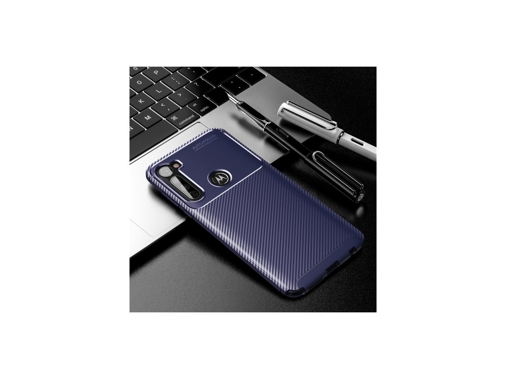 Puzdro Moto One Fusion+ Auto Focus karbónová textúra modrá farba