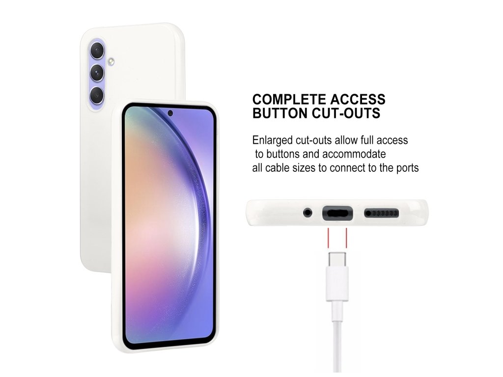 Výrezy v puzdre umožňujú jednoduchý prístup ku všetkým portom, tlačidlám a funkcionalitám vášho telefónu Samsung Galaxy A54 5G.