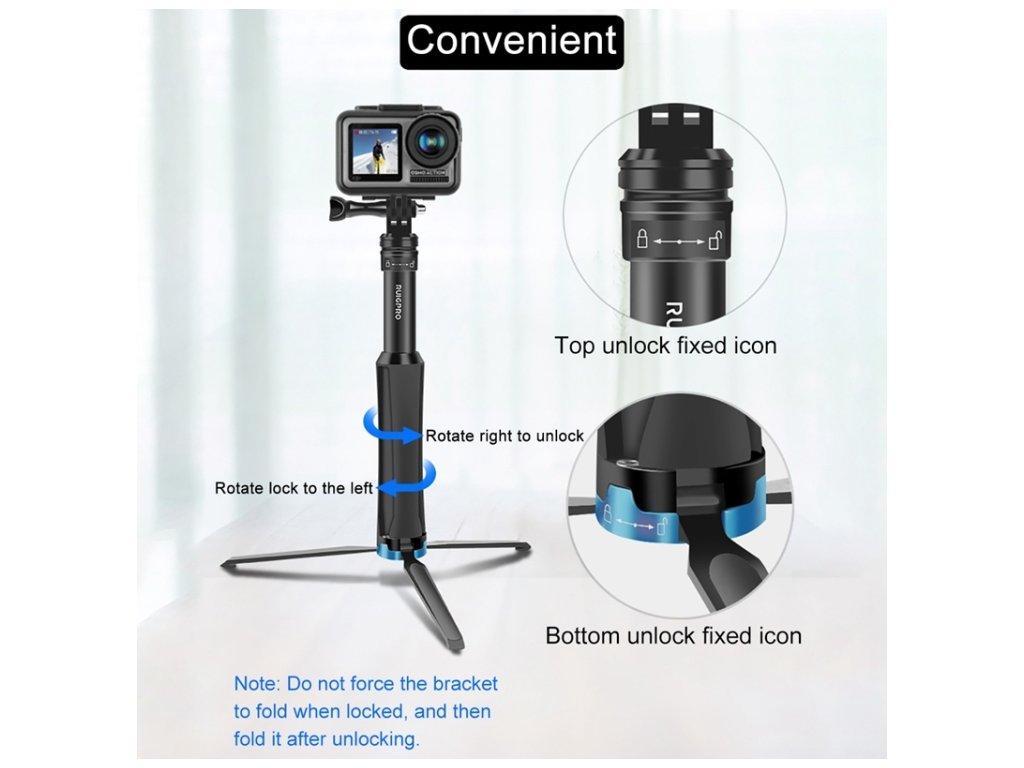 RUIGPRO ručný statív + selfie tyč na GoPro, Insta360, DJI