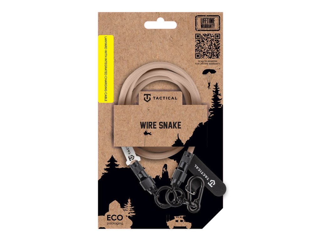 Tactical Wire Snake spojuje odolný lanyard s plně funkčním USB-C / USB-C nabíjecím kabelem.