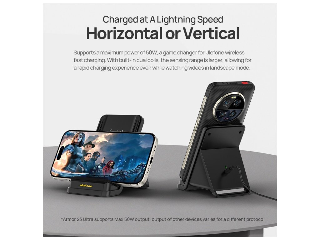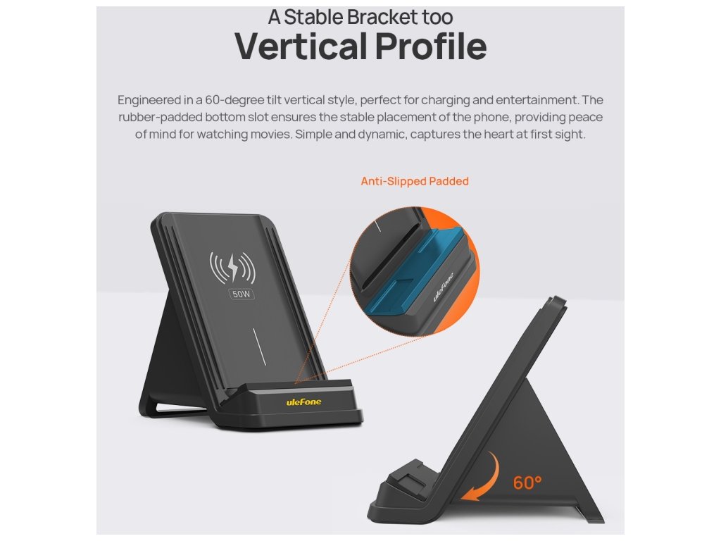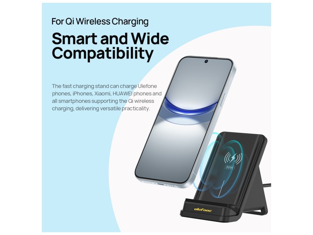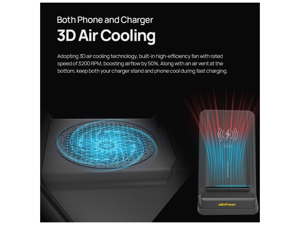 Rýchlo a bezpečne nabite svoj telefón s Ulefone WCS01 50W Air-cooled Wireless Charger Stand (Black).
