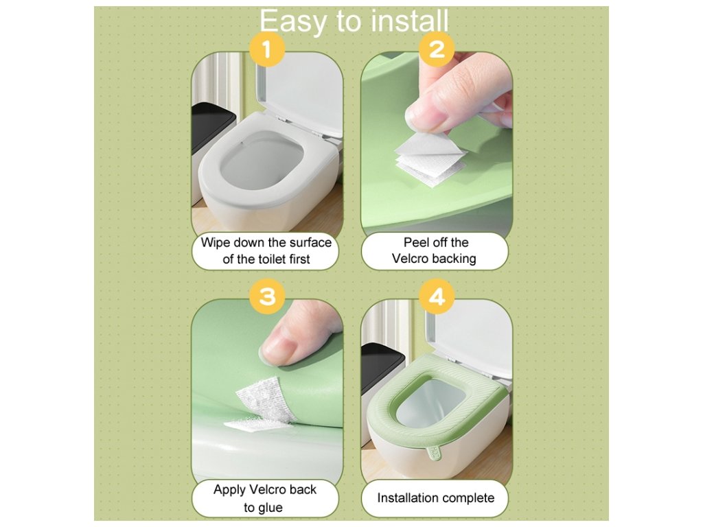 3. Univerzálna Veľkosť: Navrhnutý tak, aby pasoval na väčšinu štandardných WC sedátok, tento poťah sa ľahko nasadzuje a zabezpečuje stabilné upevnenie. Je pružný a prispôsobí sa rôznym tvarom a veľkostiam.