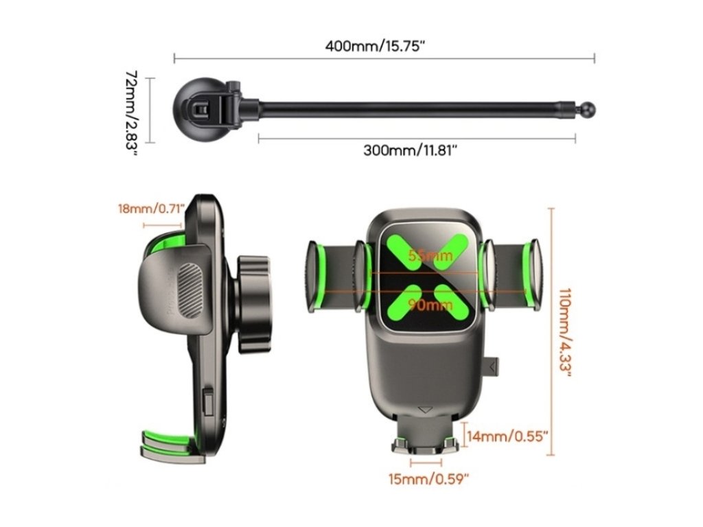 X034 Univerzálny držiak na mobil do auta (čierny) je ideálnym riešením pre vodičov nákladných áut, autobusov a veľkých vozidiel.