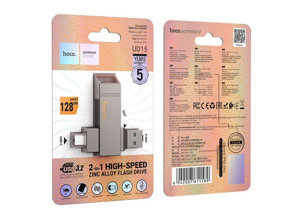 USB kľúč Hoco UD15 s kapacitou 128GB je praktické a rýchle úložné zariadenie určené pre používateľov, ktorí potrebujú spoľahlivý prenos dát medzi rôznymi zariadeniami. Vďaka dvojitému rozhraniu USB-A aj USB-C je kompatibilný s väčšinou moderných smartfónov, tabletov, notebookov aj klasických počítačov.